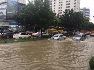 ในช่วงหน้าฝนหรือฝนหลงฤดูอันอาจเนื่องจากพายุ ลมมรสุมเคลื่อนผ่านประเทศไทย ฯลฯ ทำให้มีสายฝนกระหน่ำชุ่มฉ่ำ ถ้าหนักมากก็อาจทำให้เกิดปัญหากับคนใช้รถใช้ถนนได้ โดยเฉพาะในกรุงเทพฯ