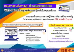 กรมขนส่งแนะ! ขอใบขับขี่ใหม่หรือขอต่อ อบรมกับสถาบันศึกษาของรัฐได้ กรมขนส่งทางบก แนะ!!! ผู้ประสงค์ขอรับใบอนุญาตขับรถและผู้ขอต่อใบอนุญาตขับรถตามกฎหมายว่าด้วยรถยนต์