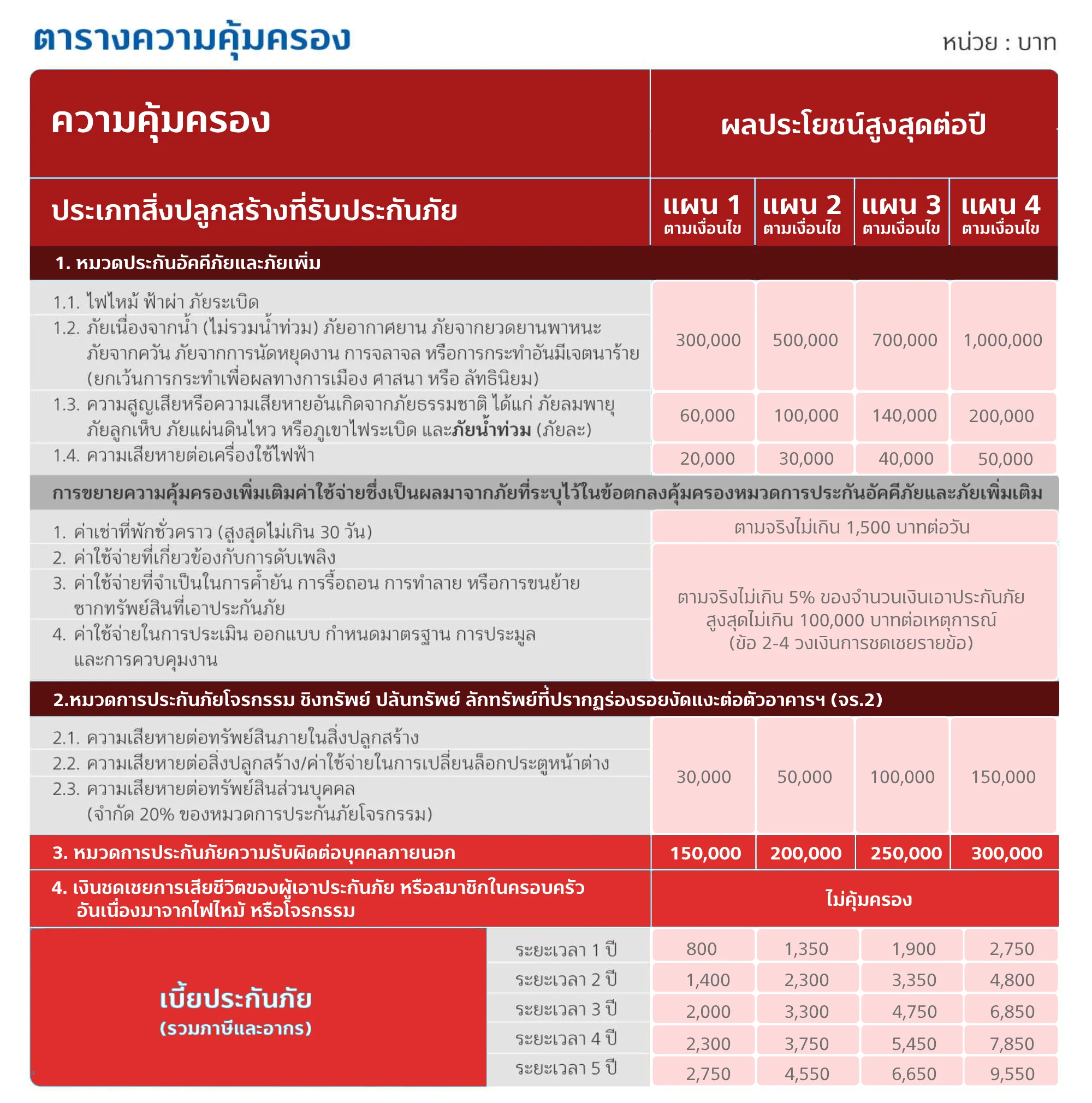 - สามารถซื้อได้มากกว่า 1 กรมธรรม์ต่อบ้าน 1 หลัง